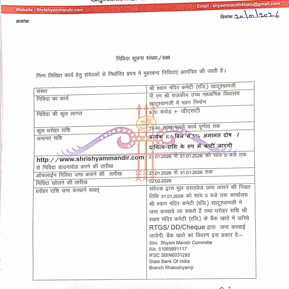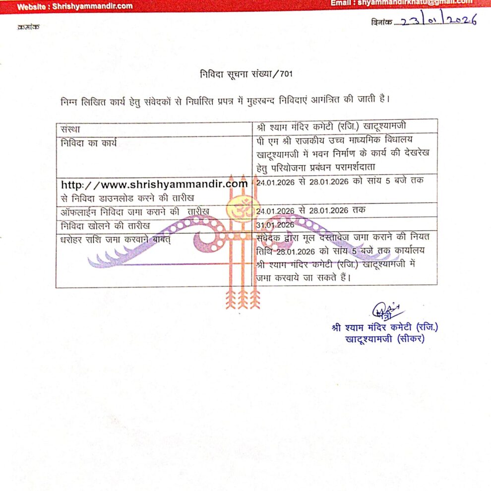 हारे का सहारा बाबा श्याम हमारा आज दिनांक – 23 जनवरी 2026 पुलिस राजस्थान के अतिरिक्त महानिदेशक श्री राघवेंद्र सुहास जी (आईपीएस) बाबा श्याम के