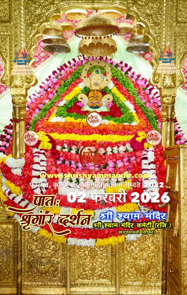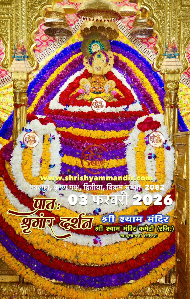 हारे का सहारा बाबा श्याम हमारा आज दिनांक – 03 फरवरी 2026 जहां महाराज मानवेंद्र सिंह जी चौहान जी (मंत्री) श्री श्याम मंदिर कमिटी खाटू