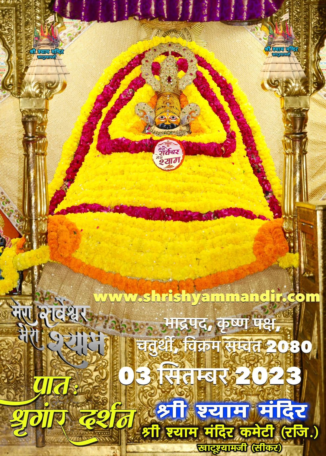 Sep32023Darshan Share This Article Share on FacebookShare on Facebook TweetShare on Twitter Pin itShare on Pinterest Share on LinkedInShare on LinkedIn Post navigationPreviousPrevious post:02 सितम्बर 2023 – बागेश्वर धाम के पीठाधीश्वर परम पूज्य धीरेन्द्र कृष्ण शास्त्री जी बाबा श्याम के दर्शनों की कामना को पूर्ण करने हेतु आज खाटूश्यामजी पहुँचेNextNext post:प्रातः शृंगार दर्शन – 04 सितम्बर 2023 – श्री श्याम दर्शनRelated postsभव्य दर्शन – 03 नवम्बर 2025 – श्री श्याम दर्शनNovember 3, 2025भव्य दर्शन – 02 नवम्बर 2025 – श्री श्याम दर्शनNovember 2, 2025भव्य दर्शन – 01 नवम्बर 2025 – श्री श्याम दर्शनOctober 31, 2025भव्य दर्शन – 31 अक्टूबर 2025 – श्री श्याम दर्शनOctober 31, 2025भव्य दर्शन – 30 अक्टूबर 2025 – श्री श्याम दर्शनOctober 30, 2025भव्य दर्शन – 29 अक्टूबर 2025 – श्री श्याम दर्शनOctober 29, 2025