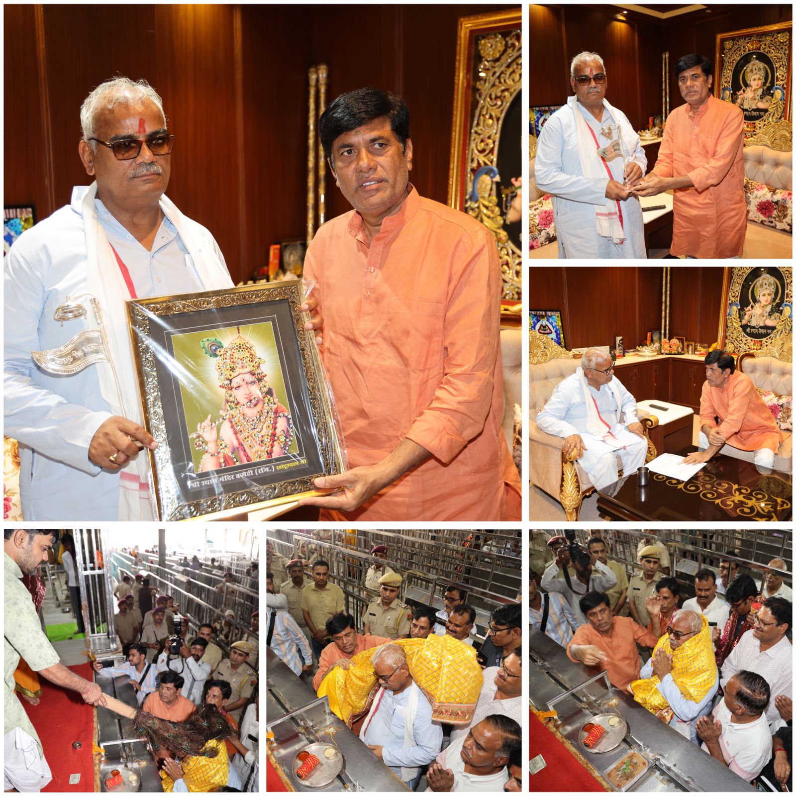 राजस्थान के शिक्षा मंत्री श्री मदन दिलावर जी बाबा श्याम के दर्शन करने के लिए आज खाटूश्यामजी पहुँचे, यहाँ मंदिर कमेटी के अध्यक्ष श्री प्रताप सिंह चौहान जी ने मंत्री जी को बाबा श्याम का दुपट्टा ओढ़ाकर व प्रतीक चिन्ह देखकर बाबा श्याम का आशीर्वाद दिया।