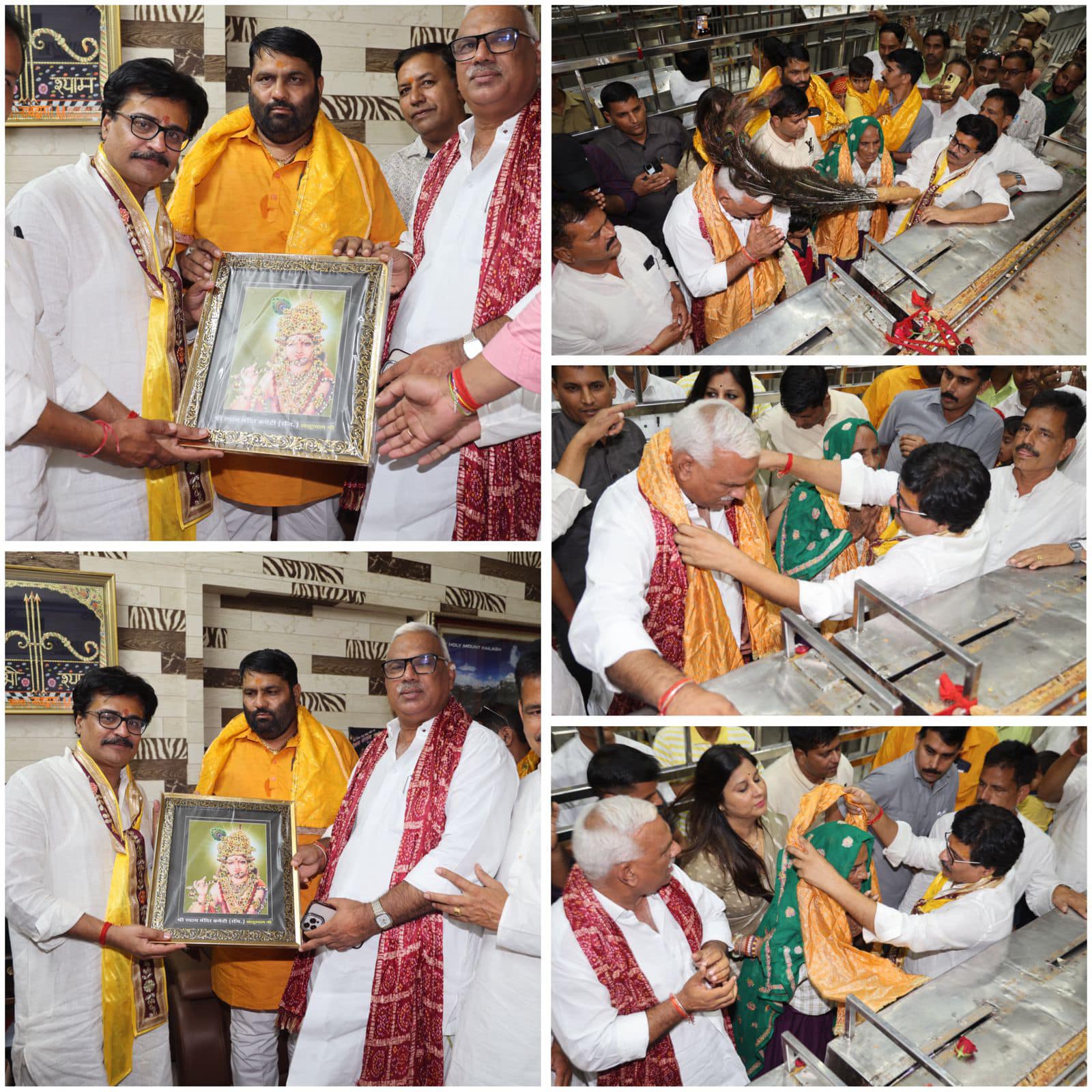 राजस्थान सरकार के गृह राज्यमंत्री श्री जवाहर सिंह बेढ़म जी एवं भीलवाड़ा (माण्डल) के विधायक श्री उदय लाल भड़ाना जी बाबा श्याम के दर्शन करने के लिए आज खाटूश्यामजी पहुँचे, यहाँ मंदिर कमेटी के अध्यक्ष श्री पृथ्वी सिंह चौहान जी ने गृह राज्यमंत्री जी एवं विधायक जी को बाबा श्याम का दुपट्टा ओढ़ाकर व प्रतीक चिन्ह देखकर बाबा श्याम आज दिनांक – 17 अक्टूबर 2024