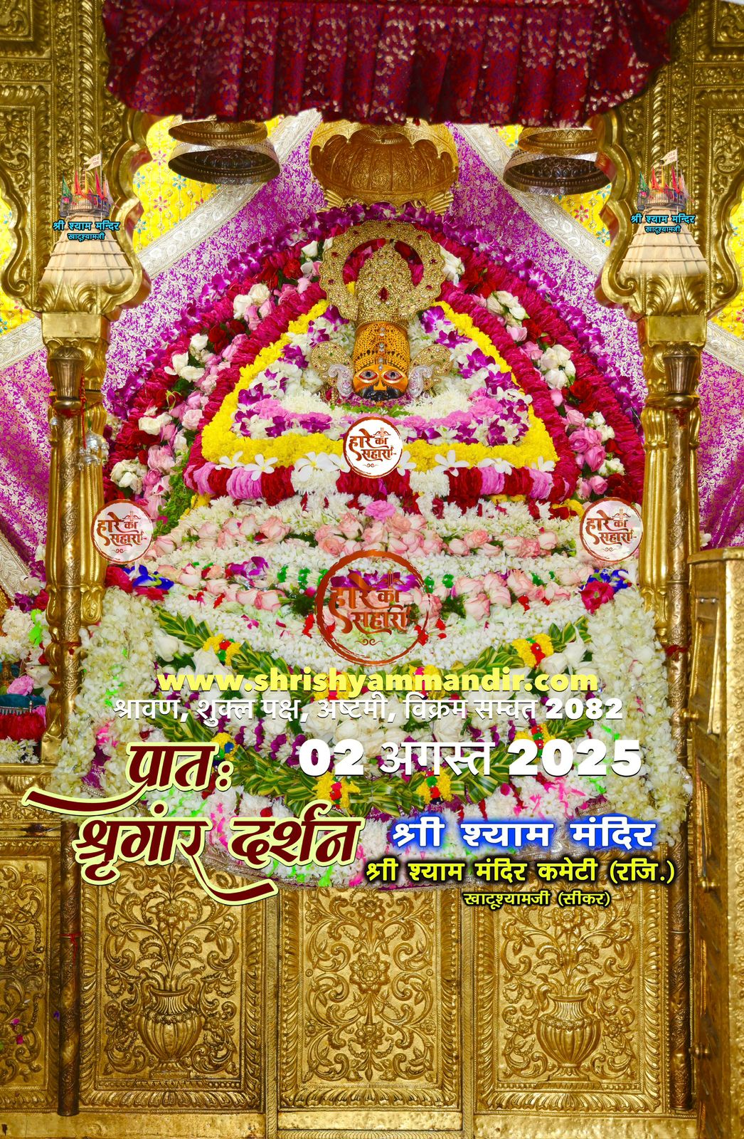 Aug22025Darshan Share This Article Share on FacebookShare on Facebook TweetShare on Twitter Pin itShare on Pinterest Share on LinkedInShare on LinkedIn Post navigationPreviousPrevious post:भव्य दर्शन – 01 अगस्त 2025 – श्री श्याम दर्शनNextNext post:माननीय उच्च न्यायालय राजस्थान के मुख्य न्यायाधिपति माननीय श्री कल्पथी राजेंद्रन श्रीराम जी आज बाबा श्याम के दर्शन करने हेतु आज खाटूश्यामजी पहुँचेRelated postsभव्य दर्शन – 02 नवम्बर 2025 – श्री श्याम दर्शनNovember 2, 2025भव्य दर्शन – 01 नवम्बर 2025 – श्री श्याम दर्शनOctober 31, 2025भव्य दर्शन – 31 अक्टूबर 2025 – श्री श्याम दर्शनOctober 31, 2025भव्य दर्शन – 30 अक्टूबर 2025 – श्री श्याम दर्शनOctober 30, 2025भव्य दर्शन – 29 अक्टूबर 2025 – श्री श्याम दर्शनOctober 29, 2025भव्य दर्शन – 28 अक्टूबर 2025 – श्री श्याम दर्शनOctober 28, 2025