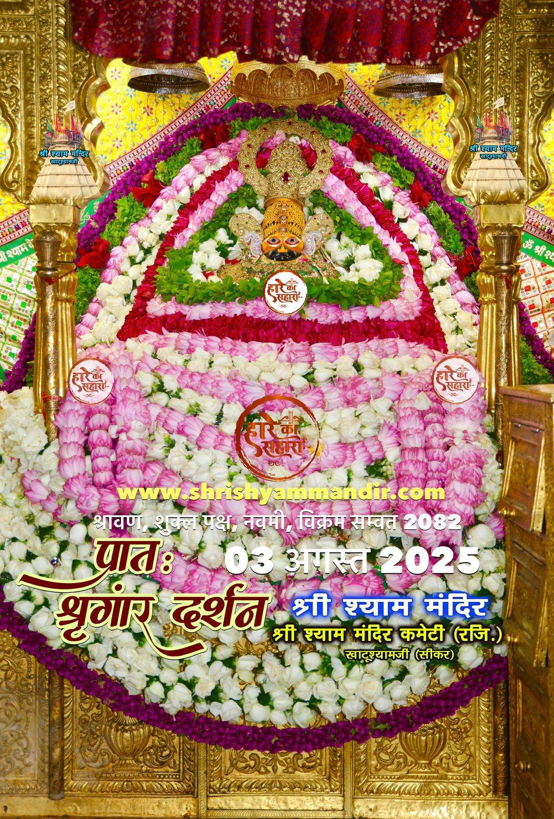 Aug32025Darshan Share This Article Share on FacebookShare on Facebook TweetShare on Twitter Pin itShare on Pinterest Share on LinkedInShare on LinkedIn Post navigationPreviousPrevious post:माननीय उच्च न्यायालय राजस्थान के मुख्य न्यायाधिपति माननीय श्री कल्पथी राजेंद्रन श्रीराम जी आज बाबा श्याम के दर्शन करने हेतु आज खाटूश्यामजी पहुँचेNextNext post:Next PostRelated postsभव्य दर्शन – 02 नवम्बर 2025 – श्री श्याम दर्शनNovember 2, 2025भव्य दर्शन – 01 नवम्बर 2025 – श्री श्याम दर्शनOctober 31, 2025भव्य दर्शन – 31 अक्टूबर 2025 – श्री श्याम दर्शनOctober 31, 2025भव्य दर्शन – 30 अक्टूबर 2025 – श्री श्याम दर्शनOctober 30, 2025भव्य दर्शन – 29 अक्टूबर 2025 – श्री श्याम दर्शनOctober 29, 2025भव्य दर्शन – 28 अक्टूबर 2025 – श्री श्याम दर्शनOctober 28, 2025