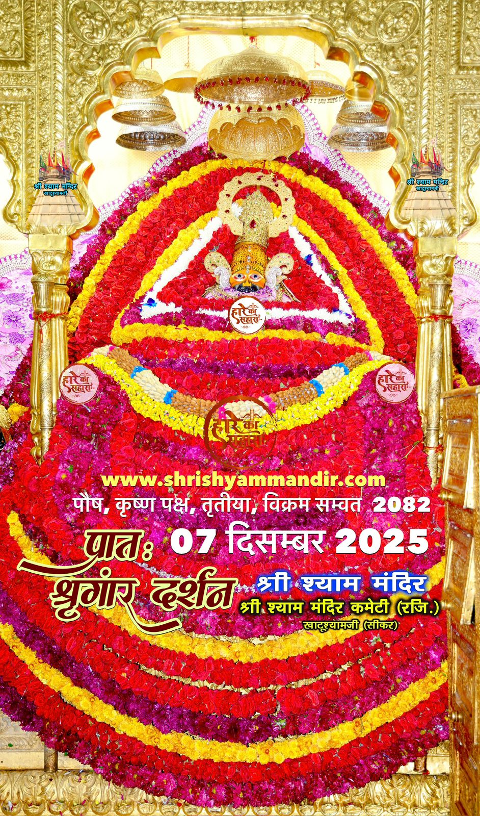 Dec72025Darshan Share This Article Share on FacebookShare on Facebook TweetShare on Twitter Pin itShare on Pinterest Share on LinkedInShare on LinkedIn Post navigationPreviousPrevious post:राजस्थान सरकार में कैबिनेट मन्त्री व सवाई माधोपुर से विधायक श्री किरोड़ी लाल मीणा जी बाबा श्याम के दर्शन करने के लिए आज खाटूश्यामजी पहुँचेNextNext post:झलक दिखलाजा की विजेता व कलर्स मराठी के लिए प्रथम उपविजेता और ज़ी टीवी डांस रियलिटी शो “डांस इंडिया डांस लिटिल मास्टर” की पहले रनर अप सुश्री वैष्णवी पाटिल जीRelated postsभव्य दर्शन – 06 दिसम्बर 2025 – श्री श्याम दर्शनDecember 6, 2025भव्य दर्शन – 05 दिसम्बर 2025 – श्री श्याम दर्शनDecember 5, 2025भव्य दर्शन – 04 दिसम्बर 2025 – श्री श्याम दर्शनDecember 4, 2025राजस्थान विधानसभा अध्यक्ष श्री वासुदेव देवनानी जीDecember 3, 2025भव्य दर्शन – 03 दिसम्बर 2025 – श्री श्याम दर्शनDecember 3, 2025भव्य विशेष दर्शन – 02 दिसम्बर 2025 – श्री श्याम दर्शनDecember 2, 2025