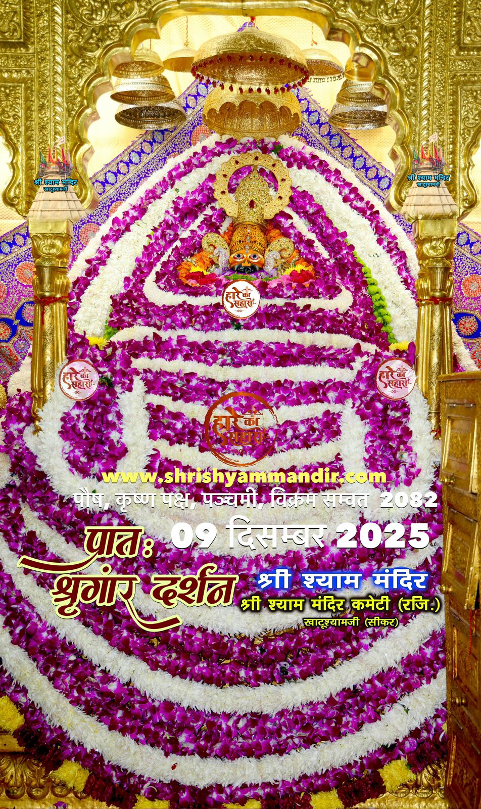 Dec92025Darshan Share This Article Share on FacebookShare on Facebook TweetShare on Twitter Pin itShare on Pinterest Share on LinkedInShare on LinkedIn Post navigationPreviousPrevious post:भारतीय अभिनेता श्री सुदेश बेरी जी बाबा श्याम के दर्शन करने के लिए आज खाटूश्यामजी पहुंचे,Related postsभव्य दर्शन – 08 दिसम्बर 2025 – श्री श्याम दर्शनDecember 8, 2025वृंदावन से श्री राधावल्लभ लाल जी मंदिर के महाराज श्री गोविंद लाल गोस्वामी जी बाबा श्याम के दर्शन करने के लिए आज खाटूश्यामजी पहुंचे,December 7, 2025भव्य दर्शन – 07 दिसम्बर 2025 – श्री श्याम दर्शनDecember 7, 2025भव्य दर्शन – 06 दिसम्बर 2025 – श्री श्याम दर्शनDecember 6, 2025भव्य दर्शन – 05 दिसम्बर 2025 – श्री श्याम दर्शनDecember 5, 2025भव्य दर्शन – 04 दिसम्बर 2025 – श्री श्याम दर्शनDecember 4, 2025