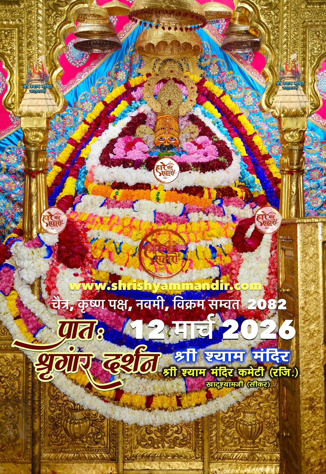 Mar122026Darshan Share This Article Share on FacebookShare on Facebook TweetShare on Twitter Pin itShare on Pinterest Share on LinkedInShare on LinkedIn Post navigationPreviousPrevious post:11 मार्च 2026 – हरियाणा सरकार में युवा सशक्तिकरण एवं उद्यमिता, खेल एवं विधि एवं विधायी मामलों के राज्य मंत्री श्री गौरव गौतम जी बाबा श्याम के दर्शन करने के लिए आज खाटूश्यामजी पहुंचेRelated postsभव्य दर्शन – 11 मार्च 2026 – श्री श्याम दर्शनMarch 11, 2026भव्य दर्शन – 10 मार्च 2026 – श्री श्याम दर्शनMarch 10, 2026भव्य दर्शन – 09 मार्च 2026 – श्री श्याम दर्शनMarch 9, 2026भव्य दर्शन – 08 मार्च 2026 – श्री श्याम दर्शनMarch 8, 2026भव्य दर्शन – 07 मार्च 2026 – श्री श्याम दर्शनMarch 7, 2026भव्य दर्शन – 06 मार्च 2026 – श्री श्याम दर्शनMarch 6, 2026