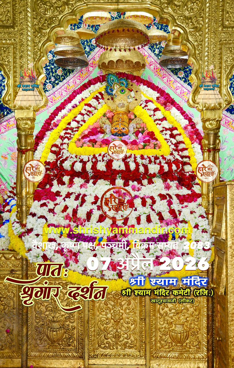 Apr212026Darshan Share This Article Share on FacebookShare on Facebook TweetShare on Twitter Pin itShare on Pinterest Share on LinkedInShare on LinkedIn Post navigationPreviousPrevious post:भव्य श्रृंगार दर्शन – 06 अप्रैल 2026 – श्री श्याम दर्शनNextNext post:भव्य श्रृंगार दर्शन – 08 अप्रैल 2026 – श्री श्याम दर्शनRelated postsभव्य श्रृंगार दर्शन – 21 अप्रैल 2026 – श्री श्याम दर्शनApril 21, 2026भव्य श्रृंगार दर्शन – 20 अप्रैल 2026 – श्री श्याम दर्शनApril 21, 2026भव्य श्रृंगार दर्शन – 19 अप्रैल 2026 – श्री श्याम दर्शनApril 21, 2026भव्य श्रृंगार दर्शन – 18 अप्रैल 2026 – श्री श्याम दर्शनApril 21, 2026भव्य श्रृंगार दर्शन – 17 अप्रैल 2026 – श्री श्याम दर्शनApril 21, 2026भव्य श्रृंगार दर्शन – 16 अप्रैल 2026 – श्री श्याम दर्शनApril 21, 2026