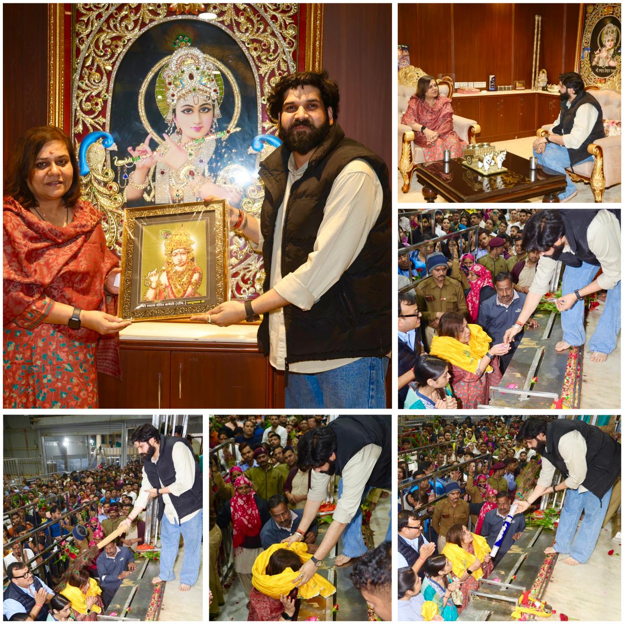 यहाँ मंदिर कमेटी के मंत्री श्री मानवेंद्र सिंह चौहान जी ने अपर्णा जी को बाबा का प्रतीक चिन्ह देकर व दुपट्टा ओढ़ाकर बाबा श्याम का आशीर्वाद दिया।