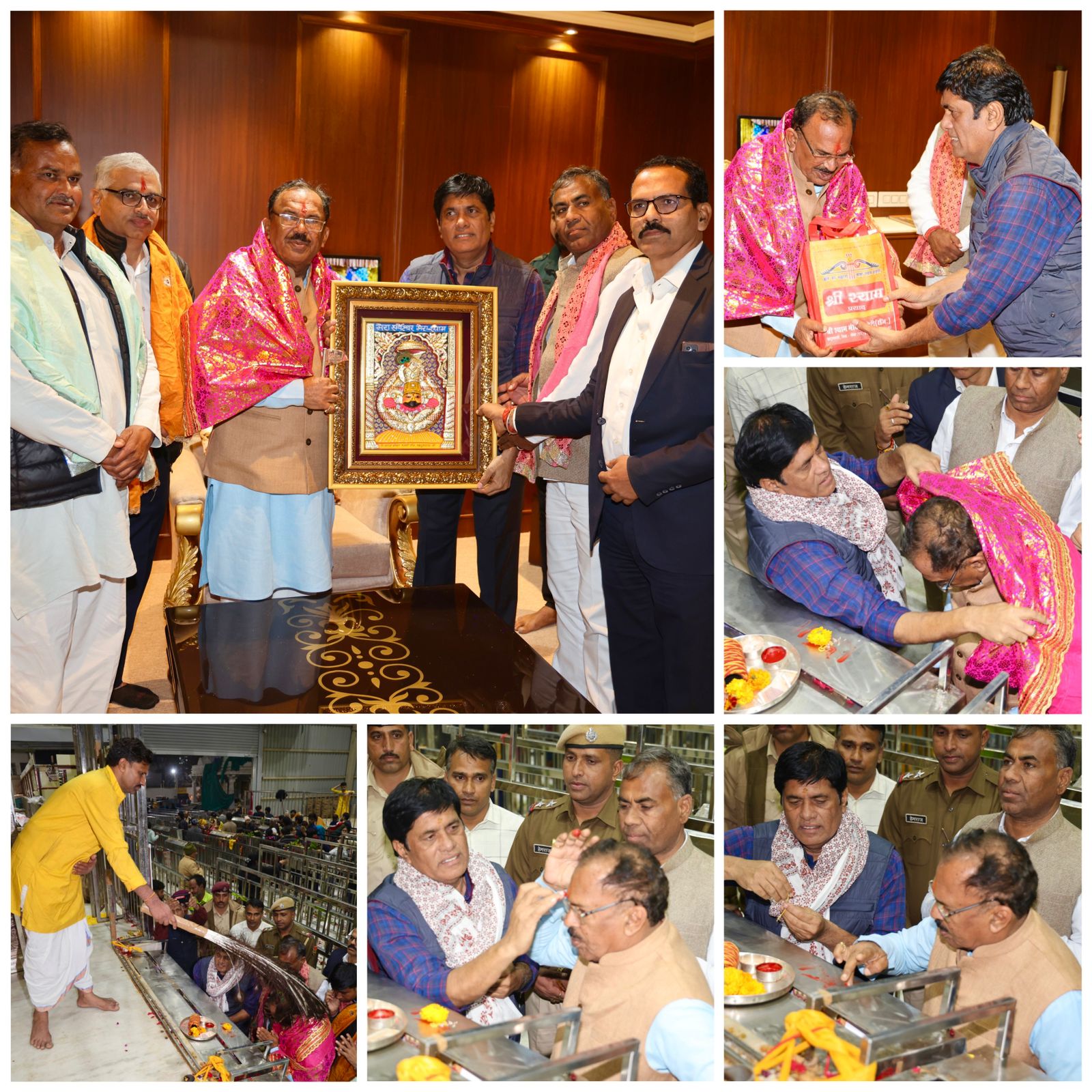 बाबा श्याम के दर्शन करने के लिए आज खाटूश्यामजी पहुँचे, यहाँ मंदिर कमेटी के अध्यक्ष श्री प्रताप सिंह चौहान जी ने देवनानी जी को बाबा श्याम का दुपट्टा ओढ़ाकर व प्रतीक चिन्ह देकर बाबा का आशीर्वाद दिया।।