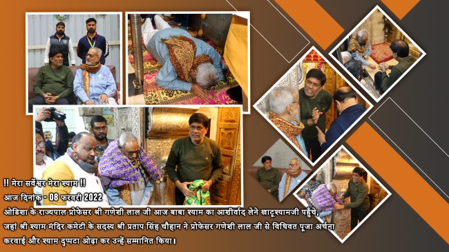 ओडिशा के राज्यपाल प्रोफेसर श्री गणेशी लाल जी आज 08 फरवरी 2022 को बाबा श्याम का आशीर्वाद लेने खाटूश्यामजी पहुँचे