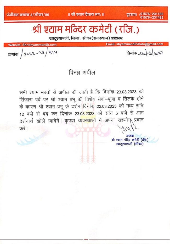 प्रातः श्रृंगार दर्शन – 23 मार्च 2023 – श्री श्याम दर्शन DarshanBy khatuMarch 23, 2023Leave a comment