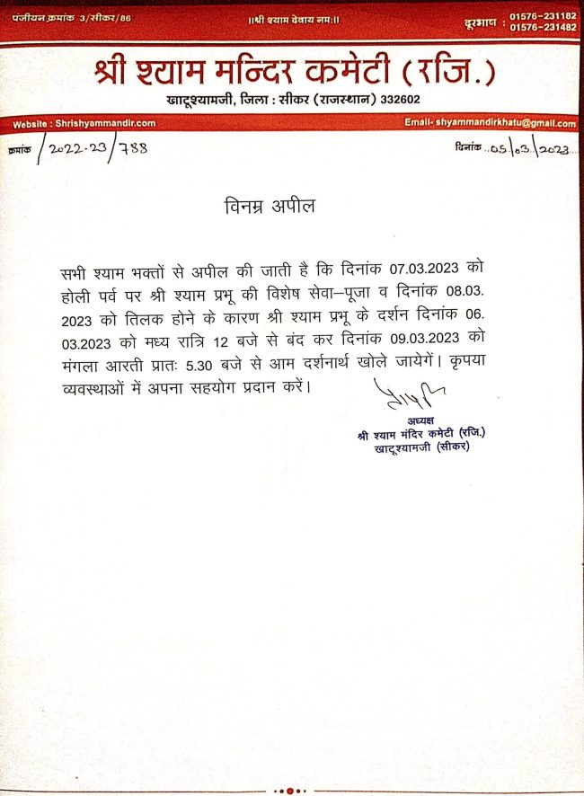 राजस्थान की पूर्व मुख्यमंत्री श्रीमती वसुंधरा राजे सिंधिया जी आज बाबा श्याम का आशीर्वाद लेने खाटूश्यामजी पहुँची NewsBy khatuMarch 5, 2023Leave a comment