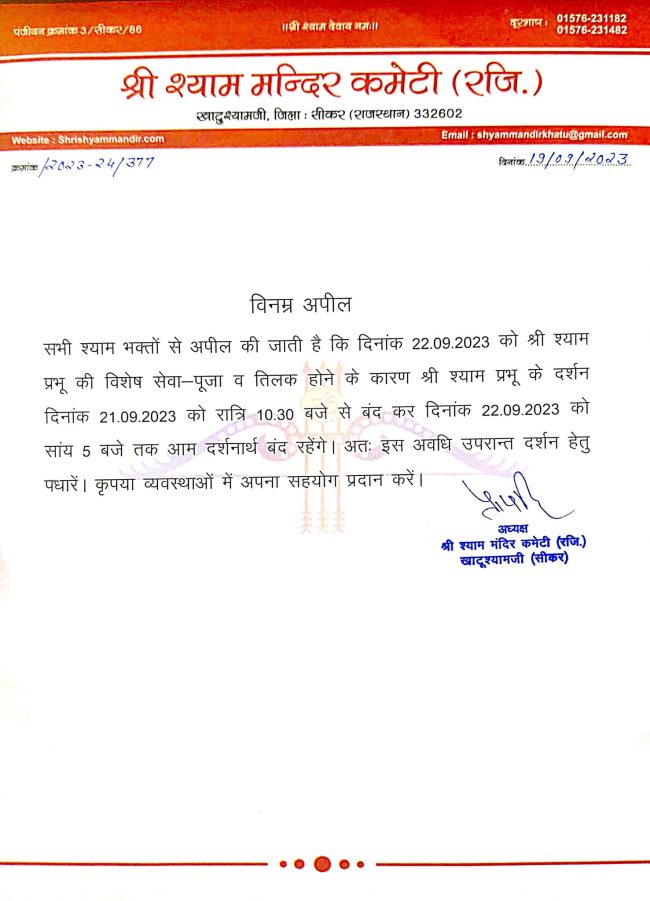 !! मेरा सर्वेश्वर मेरा श्याम !! जी बाबा श्याम के दर्शन करने के लिए आज खाटूश्यामजी पहुँचे, यहाँ मंदिर कमेटी के श्री भवानी सिंह चौहान जी ने महंत जी को बाबा श्याम का दुपट्टा ओढ़ाकर सम्मानित किया।। जय श्री श्याम www.shrishyamdarshan.in www.shrishyammandir.com https://www.youtube.com/ShriShyamDarshan