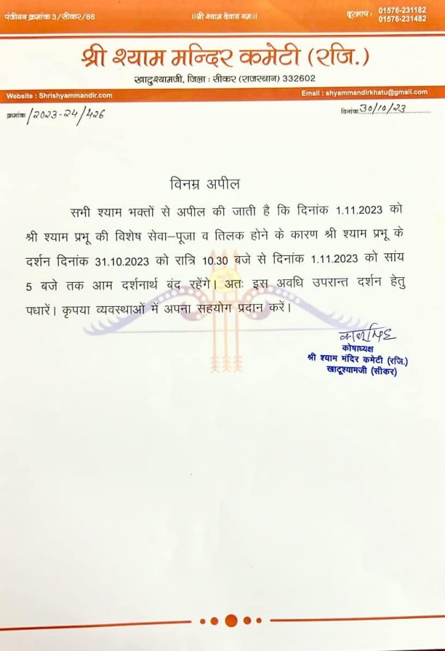 प्रातः शृंगार दर्शन – 31 अक्टूबर 2023 – श्री श्याम दर्शन DarshanBy khatuOctober 31, 2023Leave a comment