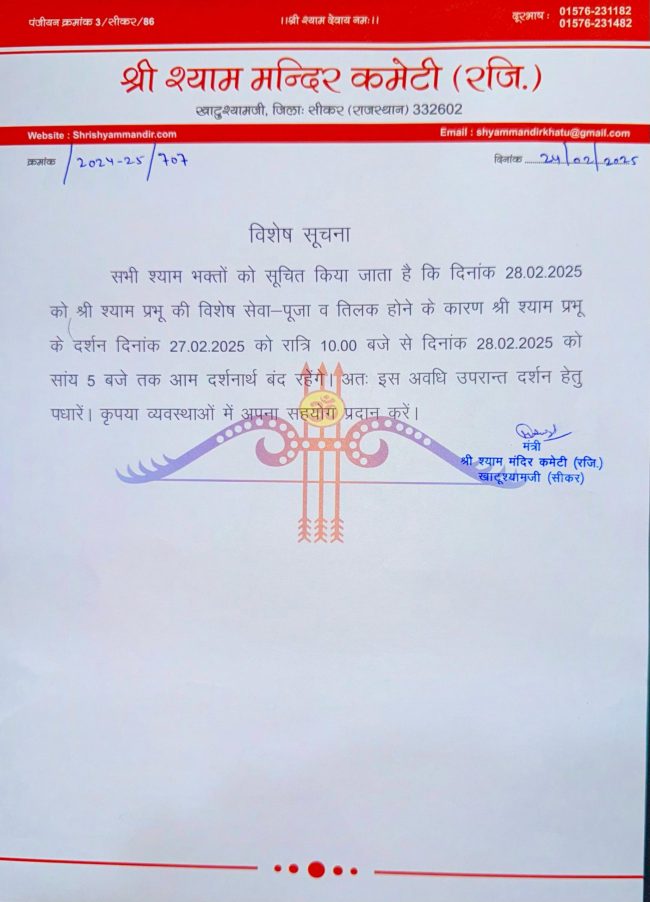 भव्य दर्शन – 24 फरवरी 2025 – श्री श्याम दर्शन