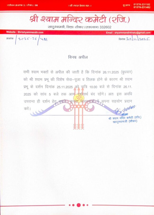 भव्य दर्शन – 20 नवम्बर 2025 – श्री श्याम दर्शन