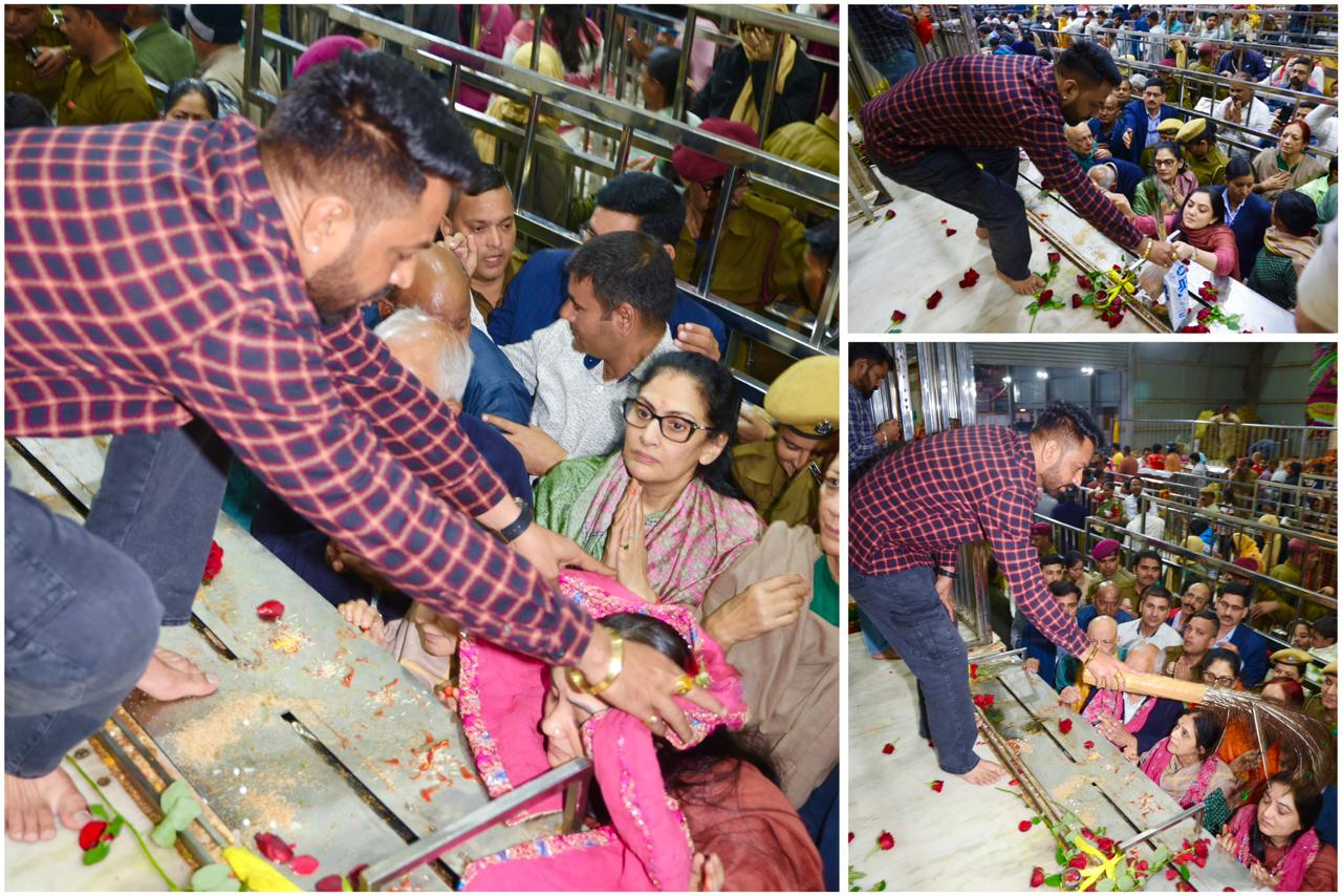 भारतीय जनता पार्टी (बीजेपी) की राष्ट्रीय प्रवक्ता श्रीमती नपुर शर्मा जी बाबा श्याम के दर्शन करने के लिए आज खाटूश्यामजी पहुंची, यहाँ मंदिर कमेटी के कोषाध्यक्ष श्री रवि सिंह चौहान जी ने नपुर शर्मा जी को दुपट्टा ओढ़ाकर बाबा श्याम का आशीर्वाद दिया।