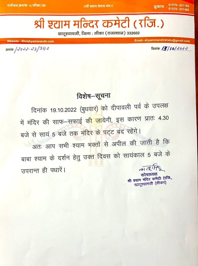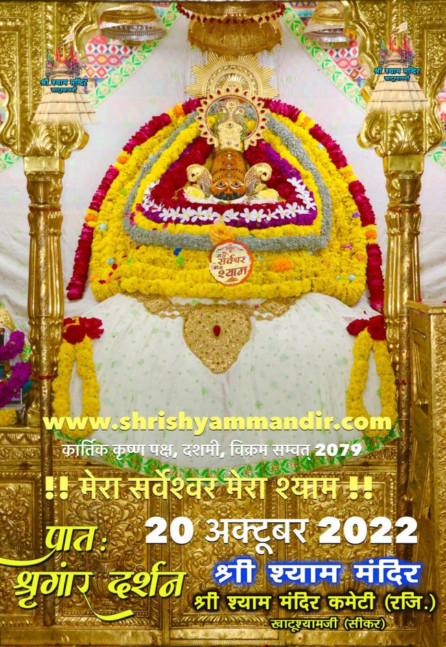 प्रातः श्रृंगार दर्शन – 20 अक्टूबर 2022 – श्री श्याम दर्शन DarshanBy khatuOctober 20, 2022Leave a comment