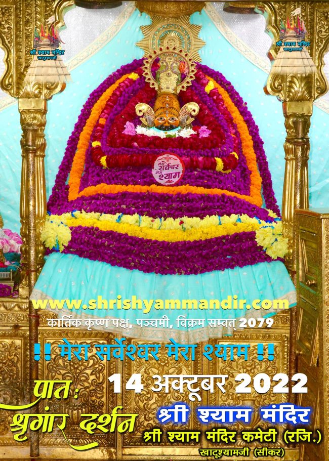 प्रातः श्रृंगार दर्शन – 14 अक्टूबर 2022 – श्री श्याम दर्शन DarshanBy khatuOctober 14, 2022Leave a comment
