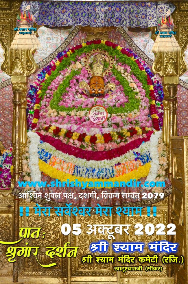 प्रातः श्रृंगार दर्शन – 10 अक्टूबर 2022 – श्री श्याम दर्शन DarshanBy khatuOctober 10, 2022Leave a comment