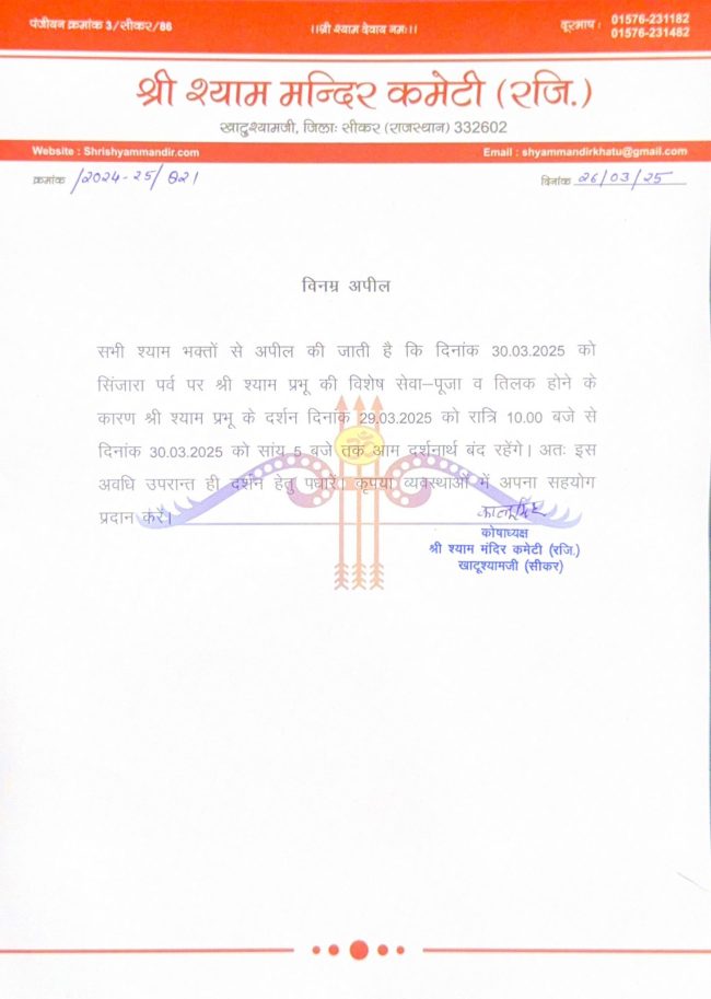 भव्य दर्शन – 25 मार्च 2025 – श्री श्याम दर्शन