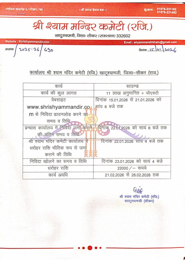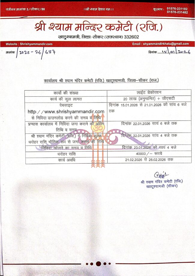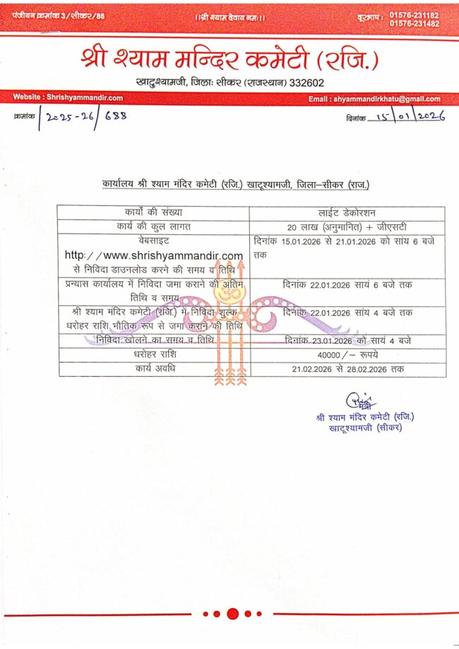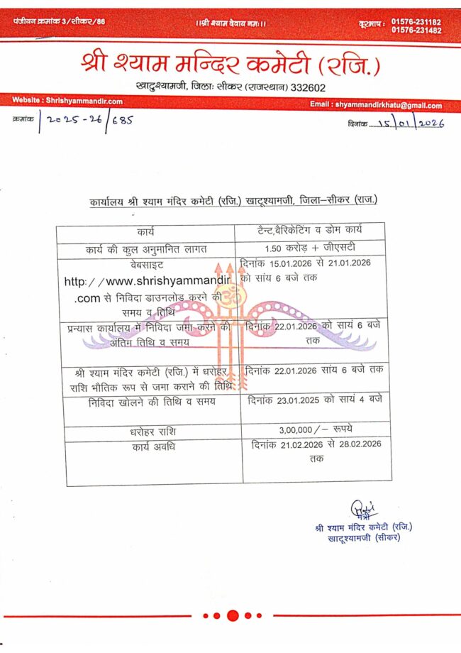 टैन्ट बैरिकेटिंग व डोम कार्य e-nividaBy khatuJanuary 23, 2025Leave a commentनिविदा सूचना टैन्ट बैरिकेटिंग व डोम कार्य