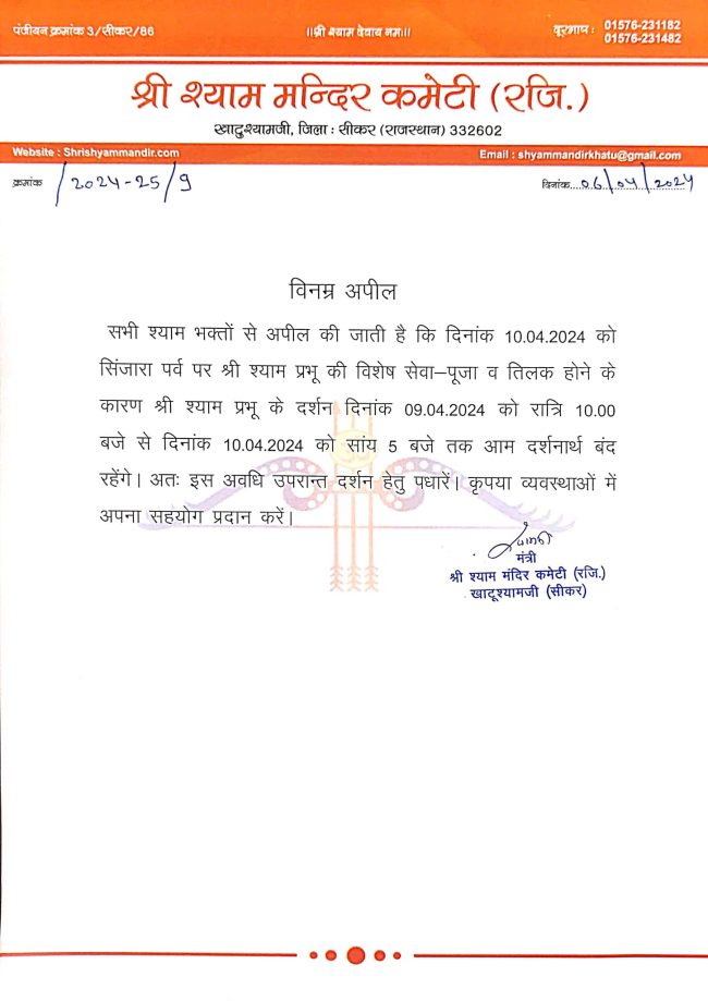 !! मेरा सर्वेश्वर मेरा श्याम !!आज दिनांक – 28 अप्रैल 2024 आज बाबा श्याम का आशीर्वाद लेने खाटूश्यामजी पहुँचे, जहां श्री श्याम बाबा के दर्शन उपरांत श्री श्याम मंदिर कमेटी के अध्यक्ष श्री प्रताप सिंह चौहान जी व मंत्री श्री श्याम सिंह चौहान जी ने किरोड़ी लाल जी को श्याम नाम का दुपट्टा उड़ाकर और…